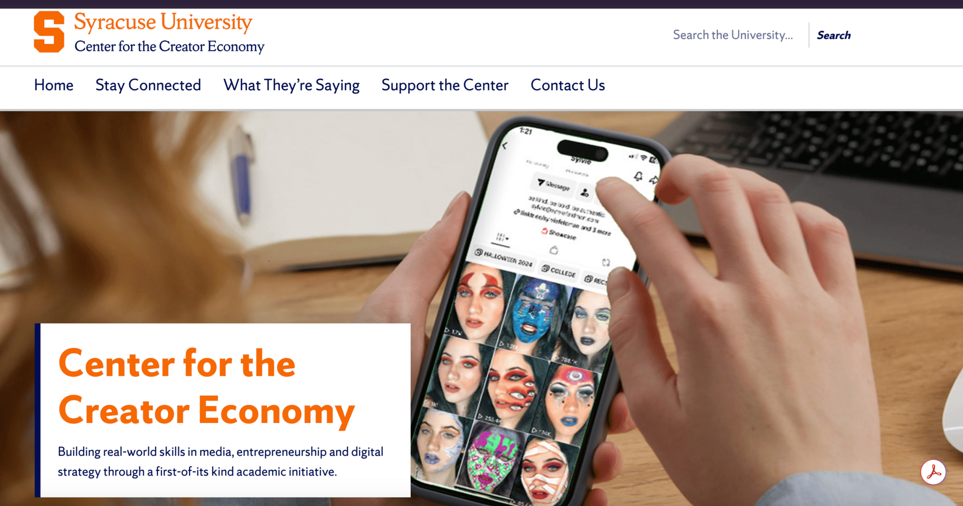 Syracuse University just launched the nation's first academic Center for the Creator Economy in fall 2024 — a joint initiative between their business and communications schools. The creator economy could be worth nearly $500 billion by 2027, and Syracuse is betting big on preparing students for this reality.